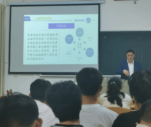 授课中,池汝安教授以习近平总书记的“绿水青山就是金山银山”为切入点,通过列举双碳战略、“十四五”规划、2035年远景目标纲要等国家层面政策要求,带领同学们感悟资源循环利用科学对国家发展的必要性与迫切性,激发同学们对专业的浓厚兴趣。